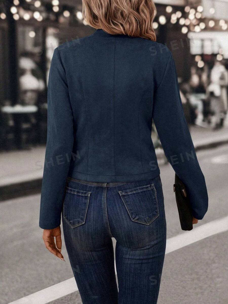 Sötétkék, poliészter-elasztán, hosszú ujjú kabát.